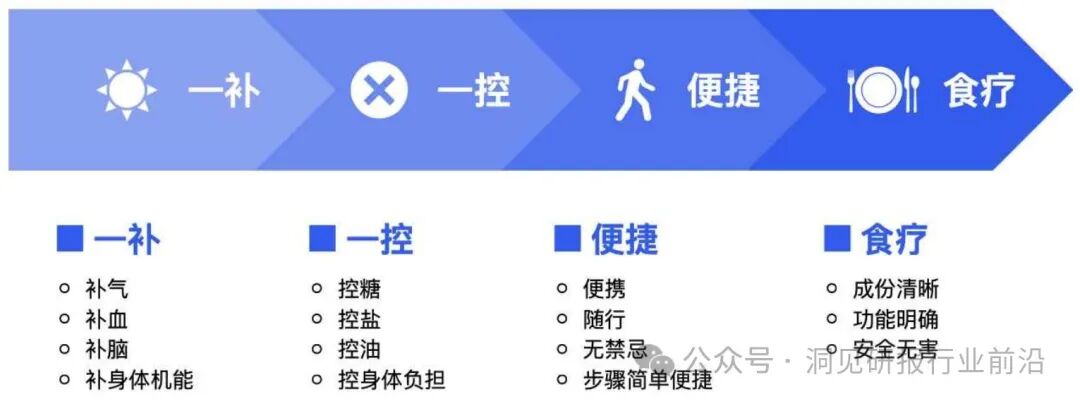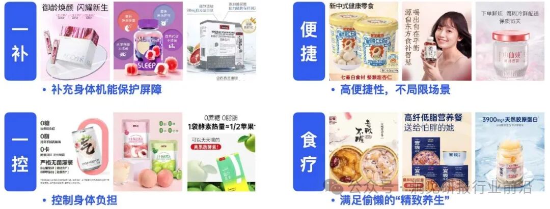 追求“一补一控”的精致养生公式,“便捷⻝疗”的精致养生理念,从而达到全方位覆盖的养生健康养生生活新方式。