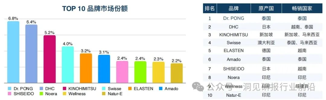 从细分市场看,在东南亚,营养保健补充剂是最大的细分市场,其次是美容营养补充剂和功能性营养补充剂。