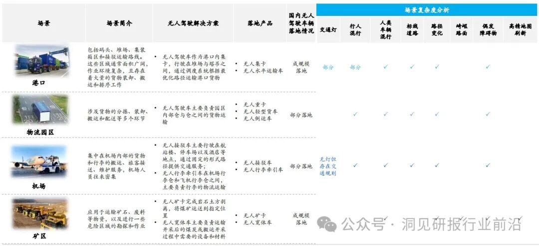港口作为无人驾驶技术商业化落地的前沿阵地,在实际应用和商业可行性方面取得了重大进展;得益于其相对封闭的场景、便捷的信息采集和完善的基建设施等优势,港口比其他场景迎来更早、更广泛的商业化落地。
