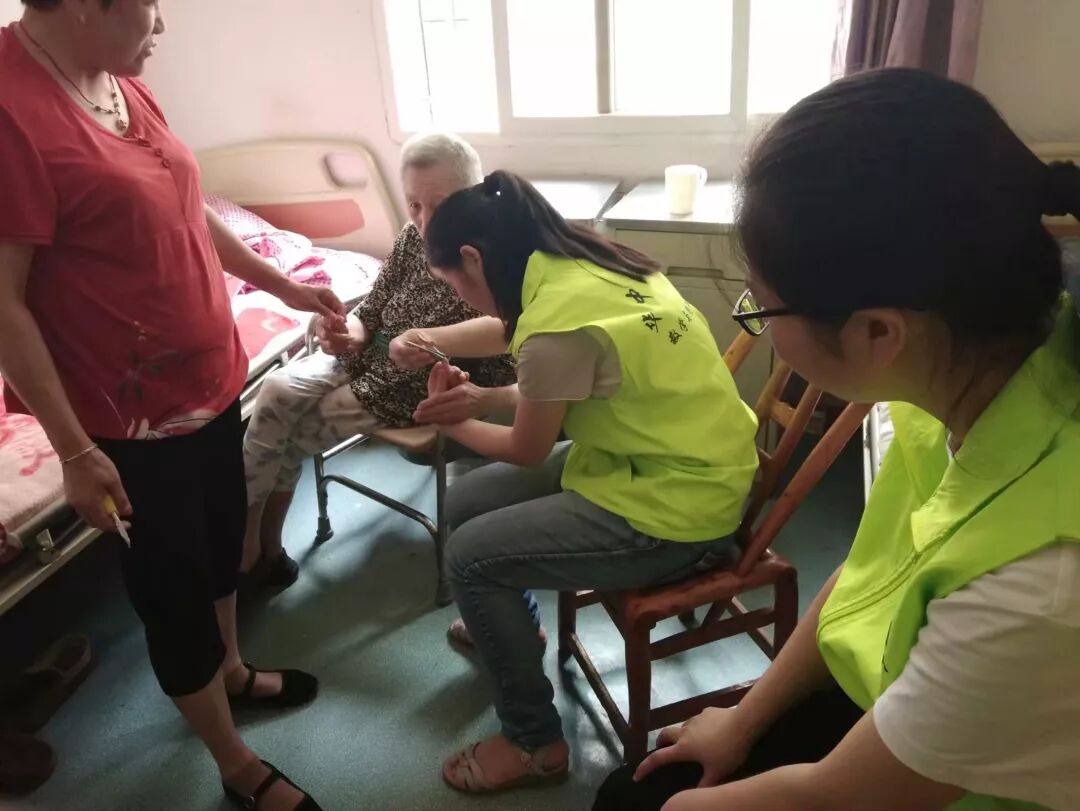每周六上午志愿者们前往晒湖养老院为老人们打扫卫生,陪老人们聊天,给他们带去欢乐和温暖。