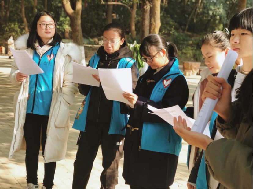 活动开始前,志愿者们聆听着活动负责人的安排,手拿活动宣传海报仔细阅读,为即将开始的志愿活动做准备。