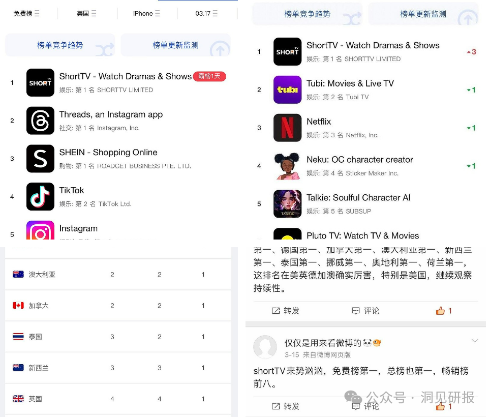 今年3月中旬,ShortTV登上了美国苹果应用商店下载榜单第一名。
