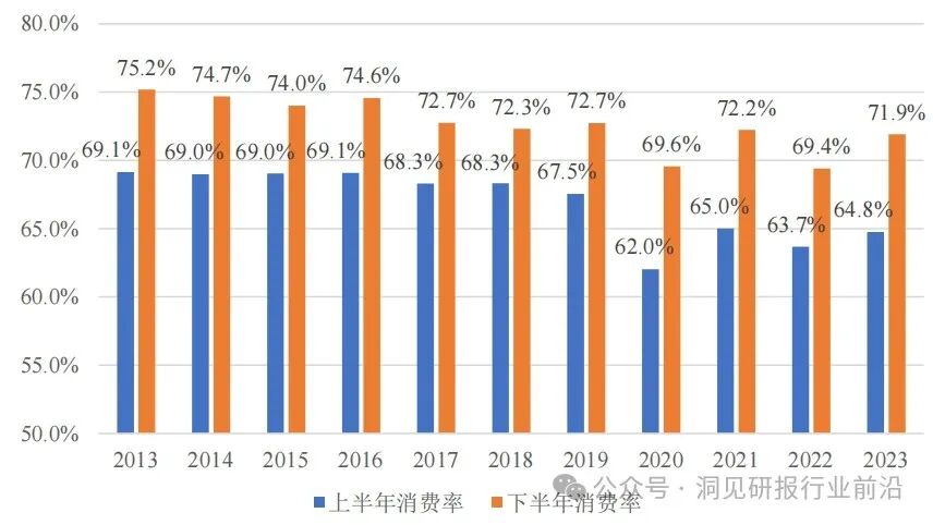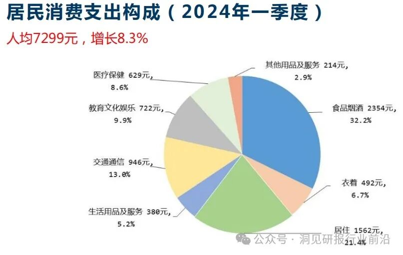 从需求端来看,消费和净出口对经济增长的贡献率明显提升;居民居住支出占比下降、食品烟酒支出占比提高,服务消费占比基本恢复至疫情前水平。