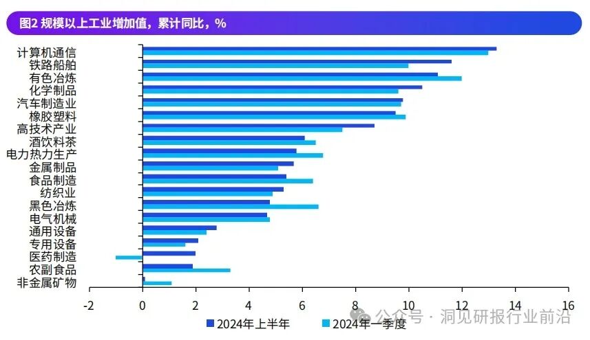 上半年规模以上工业增加值同比达6.0%,二季度同比达5.9%,较一季度6.1%小幅下行0.2个百分点。