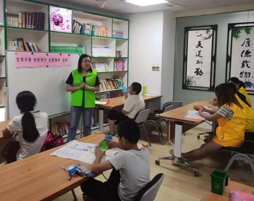 为响应即将在武汉全面推行的垃圾分类和“保大庆,迎军运” 的活动,社区辅导老师也在志愿者的协助下为学生们开展了一堂“垃圾分类知识小课堂”。老师从上海垃圾分类的热潮谈起,迅速吸引了小朋友的注意力,接着告诉小朋友们环境问题日益严重的现状,各个城市都在相继推动生活垃圾强制分类,因此学会垃圾分类迫在眉睫且十分重要。