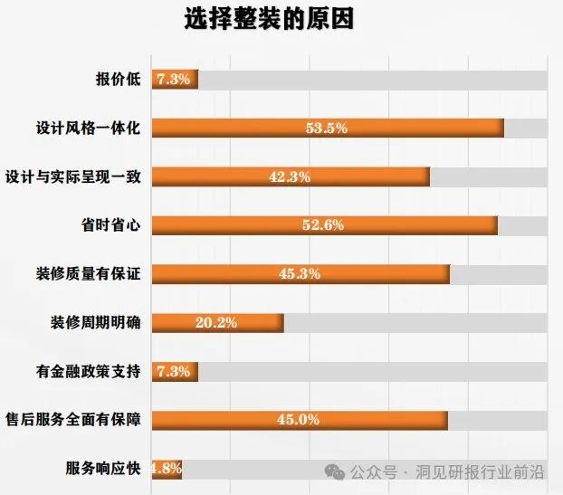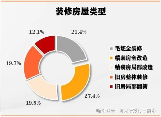 消费者层面,局改占到32%的订单,毛坯房装修仅占到21.4%,伴随着精装房和老房市场改造逐年增加,含拆改在内的整体装修是大势所趋。