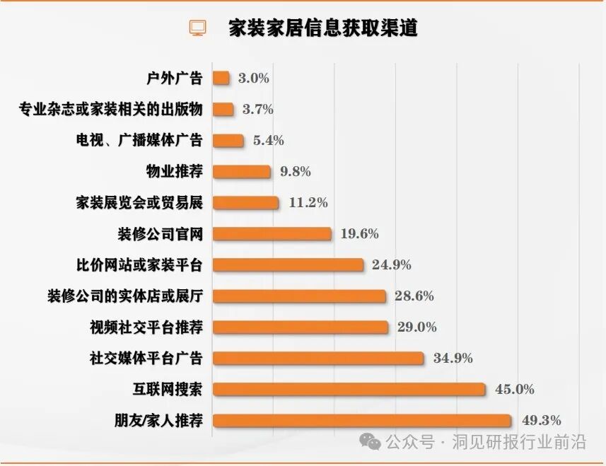 家装家居信息的获取渠道:朋友家人推荐仍为第一位。
