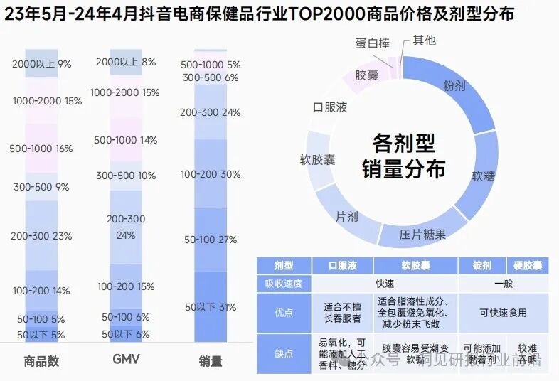 消费者通过摄入植萃成分、益生菌等成分来调节肠胃菌群或肠胃功能,达到加快代谢或强化消化功能,进而达到身材管理目的。100-200元是赛道多维度下的主流价格段,消费者整体承价能力偏低。200元以下价格段销量更高。