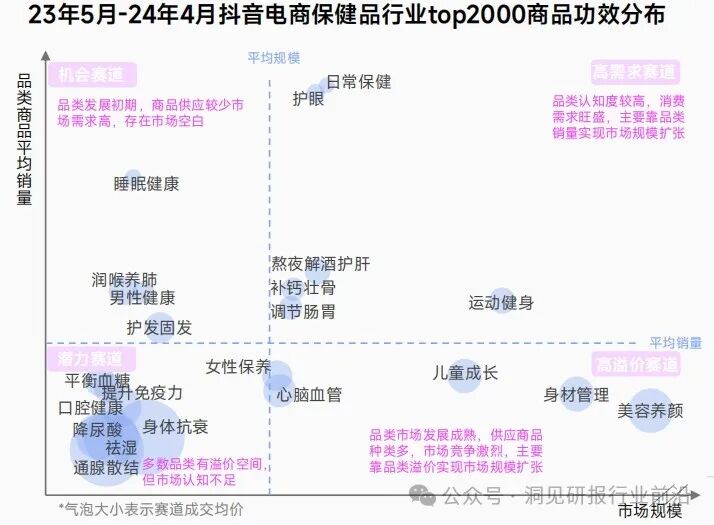 美容养颜、身材管理、运动健身、护法固发此类与“颜值经济”相关的功效品类遥遥领先,在TOP2000的商品中,占据超49%的市场份额,其中具有美容养颜功效的产品处于领先地位,该品类商品溢价能力较高,且消费者认知度高,品牌竞争较为激烈。