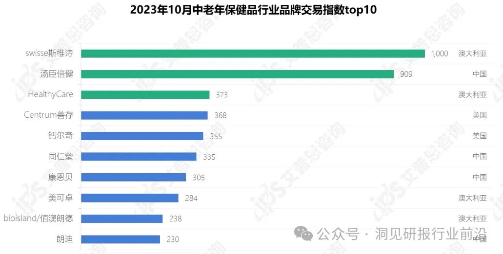 2023年10月,监测范围内中老年保健品中肽与蛋白质类、功能性油脂类交易额最高,分别占比 27%、25%,矿物质类交易额占比 17%,多糖类、维生素类交易额均占比 10%。