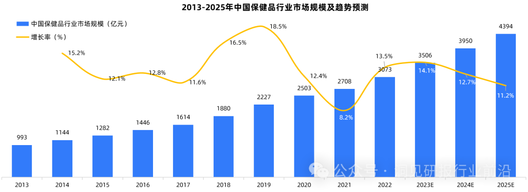 随着生活水平的不断提高,中国消费者的健康保健意识也在不断增强,在人口老龄化、养生年轻化、电商销售崛起等因素的综合影响下,中国保健品市场规模呈现逐年上升趋势。