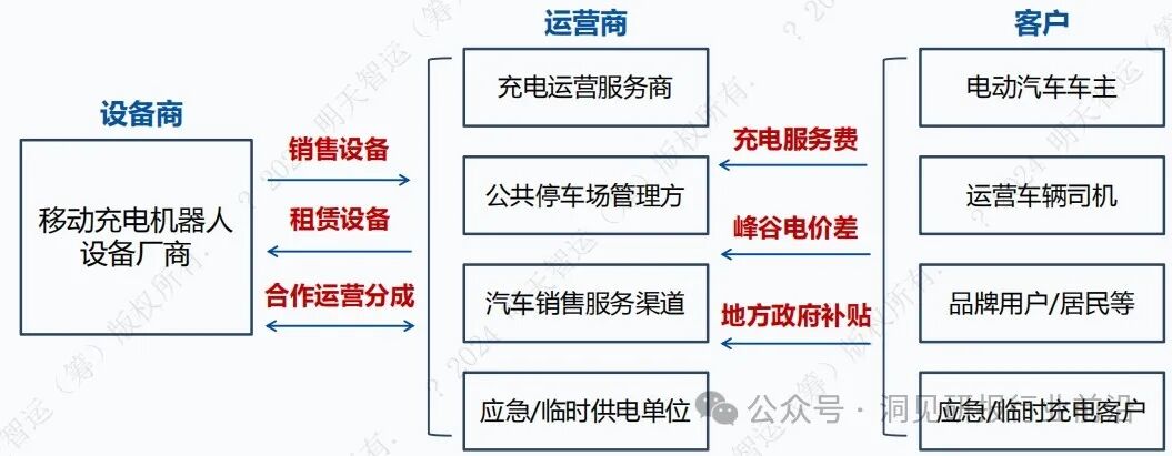 移动充电机器人厂商主要通过销售、租赁设备与合作运营分成获取收益,而充电运营服务相关主体主要通过充电服务费、峰谷电价差、地方政府补贴获取收益。