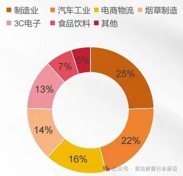 从行业应用结构来看,制造业、汽车工业、和电商物流是物流机器人最主要的应用领域,占比合计达60%以上。其中制造业占比最高,为25%。