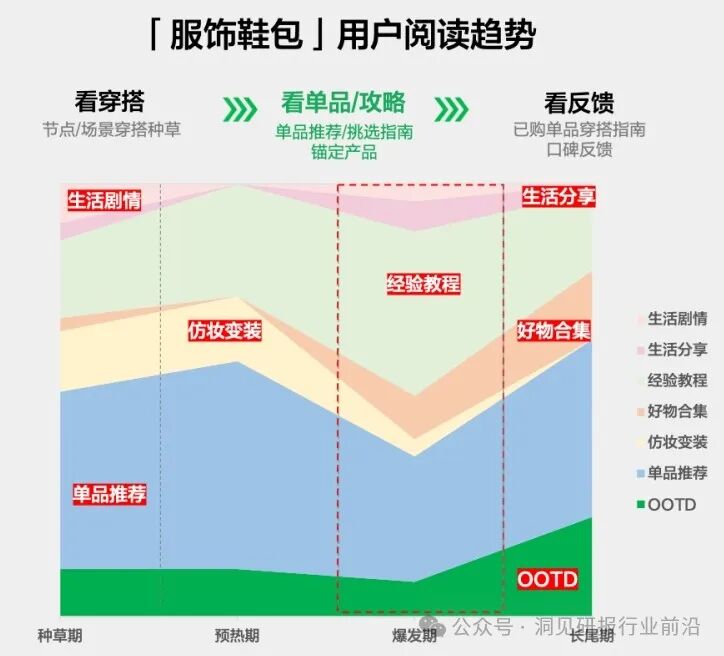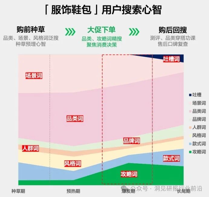 服饰鞋包:购前场景/节点穿搭种草,大促集中产品助推转化,长尾持续口碑维护。
