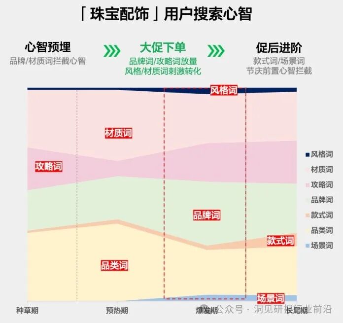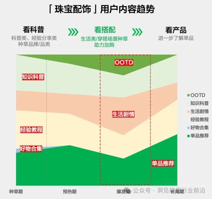 珠宝配饰:前置以干货/科普类内容预埋用户心智,爆发期穿搭场景内容放量刺激加购。