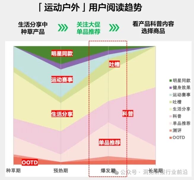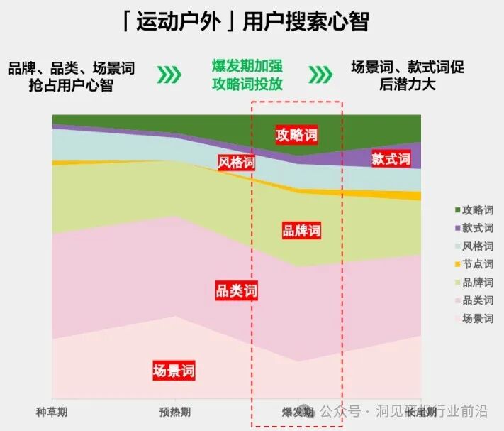 户外运动:爆发期用户更偏好攻略+品牌词搜索,配合单品推荐向内容,助力转化。