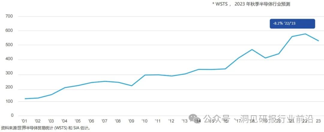 全球半导体销售额从2001年的1390亿美元增长至2023年的5269亿美元,年复合增长率达6.0%。根据世界半导体贸易统计(WSTS)2023年秋季半导体行业预测,预计全球半导体行业销售额将在2024年增长至5884亿美元,并于2025年增加至6547亿美元。