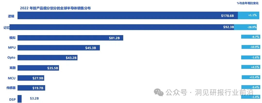 半导体技术随着行业开发适用于最终使用行业的更高级产品和工艺技术而迅速发展。近年来,全球半导体产业的最大细分市场分别是逻辑、内存、模拟以及MPU产品。至2023年,这些产品占半导体行业销售额的75%。