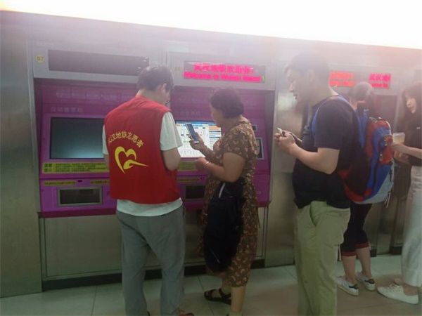 志愿者帮助乘客买票