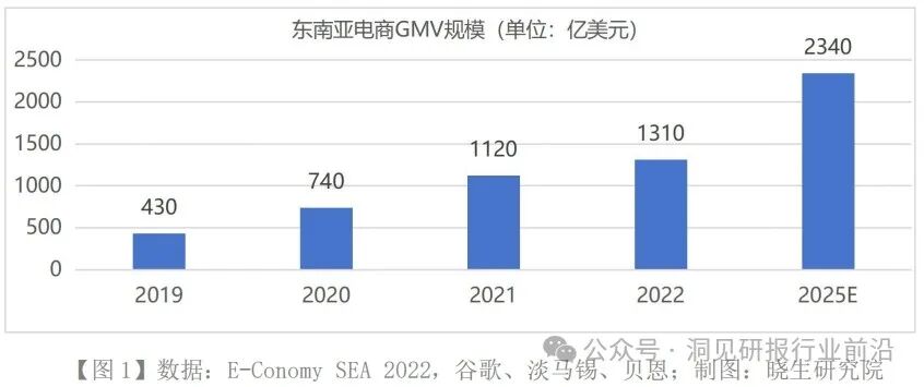 东南亚电商GMV在2022年已达到1310亿美元,未来将以26%的年复合增长率增长,预计2025年东南亚电商GMV将达到2340亿美元。