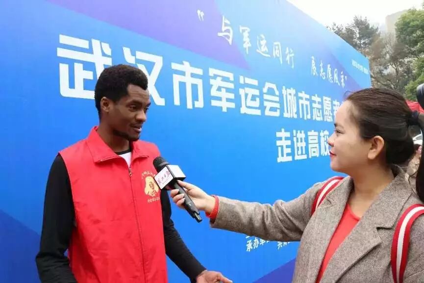 对于即将到来的军运会,“洋雷锋”服务队也代表武汉在校大学生参与其中。在军运会志愿者招募活动现场,“洋雷锋”服务队队长阿布接受了长江日报等媒体的采访,展现出我校学生积极响应军运会志愿服务工作的良好风貌。
