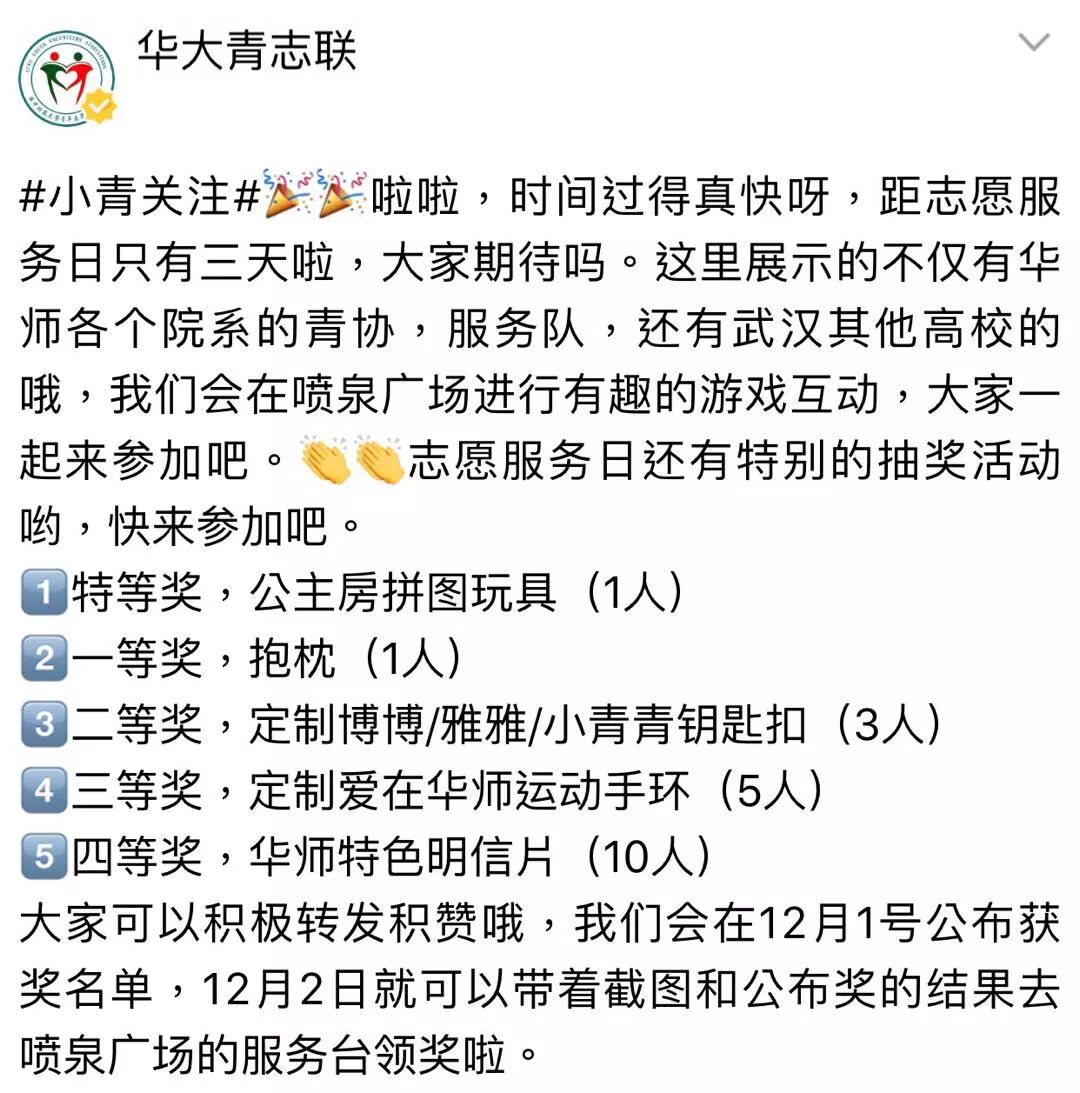 想在寒冷的12月成为华师的锦鲤吗?那就快来参加志愿者服务体验日暨成果交流展吧,小游戏大奖品,小青青等你来pick哟!