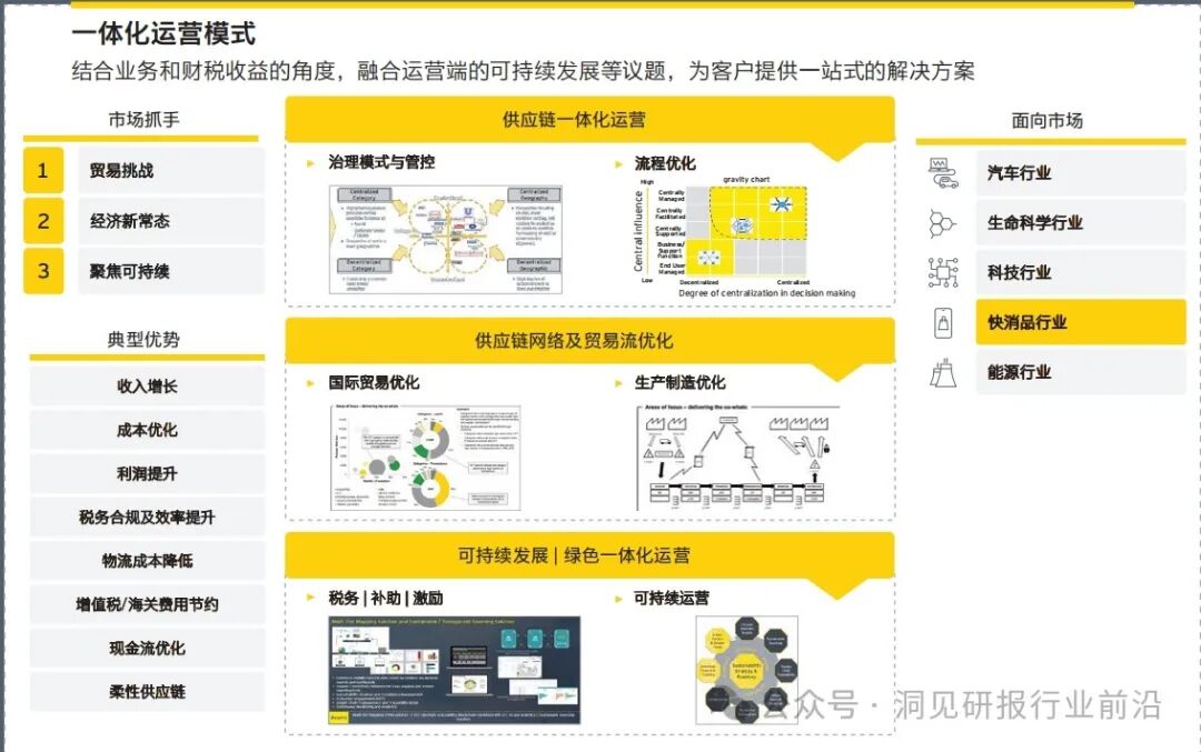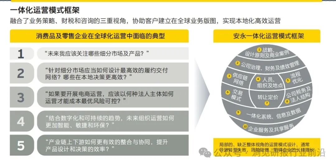 同时,一体化运营模式设计不止是“设计和实施的一体化”,更是“视角的一体化”。通过融合财税、业务策略和咨询的三重视角,重新审视企业的流程、组织和管理机制,共同提供切合零售和消费品企业自身发展特性的新增长引擎。