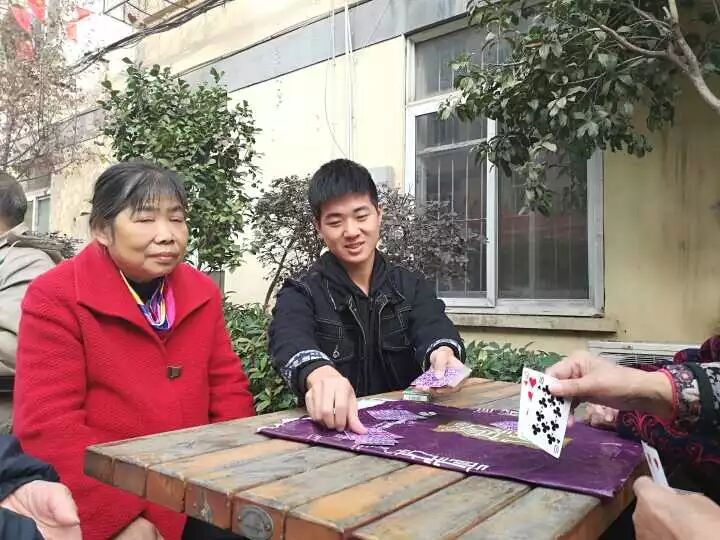 院里渐渐传出欢声笑语,志愿者们的活动也慢慢变得丰富多彩,有的陪老人聊天玩牌,有的给老人捏肩捶腿,有的帮助护工为老人服务,大家都在用自己的方式关爱着老人们。
