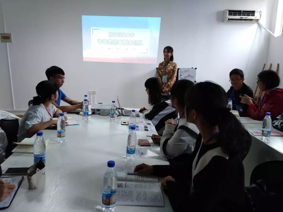 华大青志联讯 10月13日下午,华中师范大学青年志愿者联合会(以下简称华大青志联)与武汉科技大学青年志愿者服务总队(以下简称武科大总队)进行志愿服务交流分享会,双方就各自学校志愿活动开展、志愿服务培训等问题展开了讨论。
