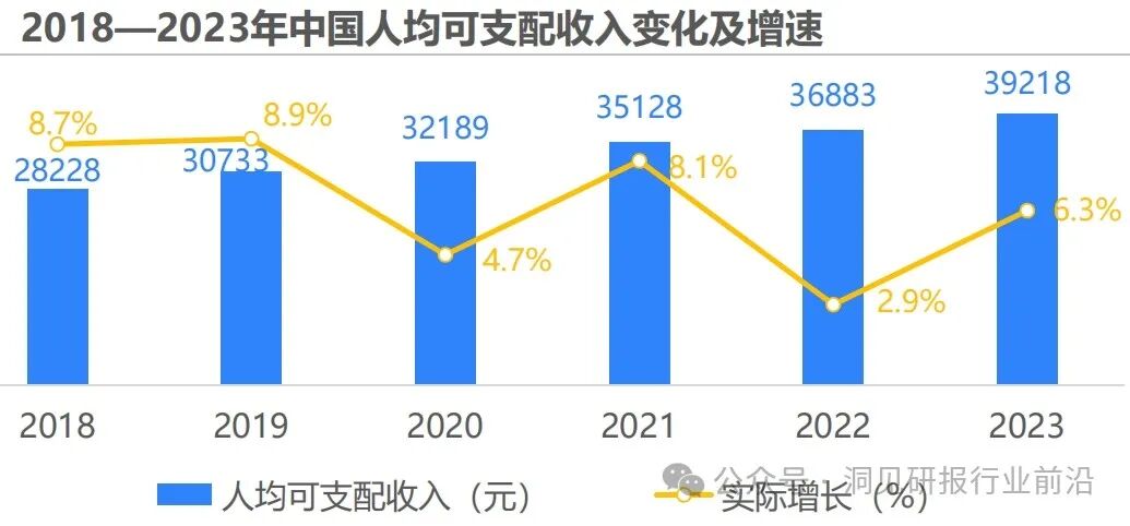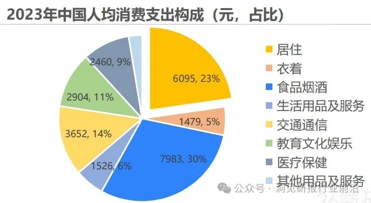 2023年,85.28%消费者主动增加了健康产品的购买频率。作为家居生活场景内健康管理的重要辅助,健康家电自然备受消费者关注。92%消费者在选购家电时特别关注家电的健康功能。我国居民可支配收入达39,218元,同比增长6.3%,而在消费支出中,22.7%用于居住相关消费,仅次于食品烟酒。