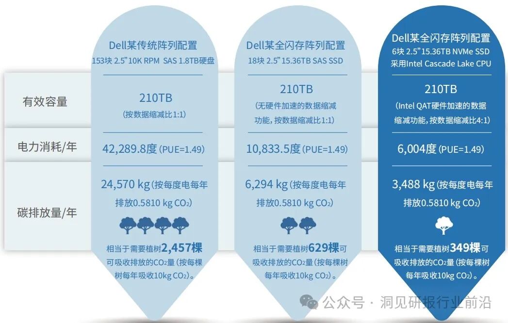 全闪存第五代存储基于硬件加速的数据缩减功能,大幅降低了对电力、空间和冷却的需求,助力绿色环保目标的达成。当使用具有硬件加速的数据缩减功能的全闪存阵列技术时,相比于使用全机械硬盘每年可减少86%的碳排放,相当于每年多种树2108棵。