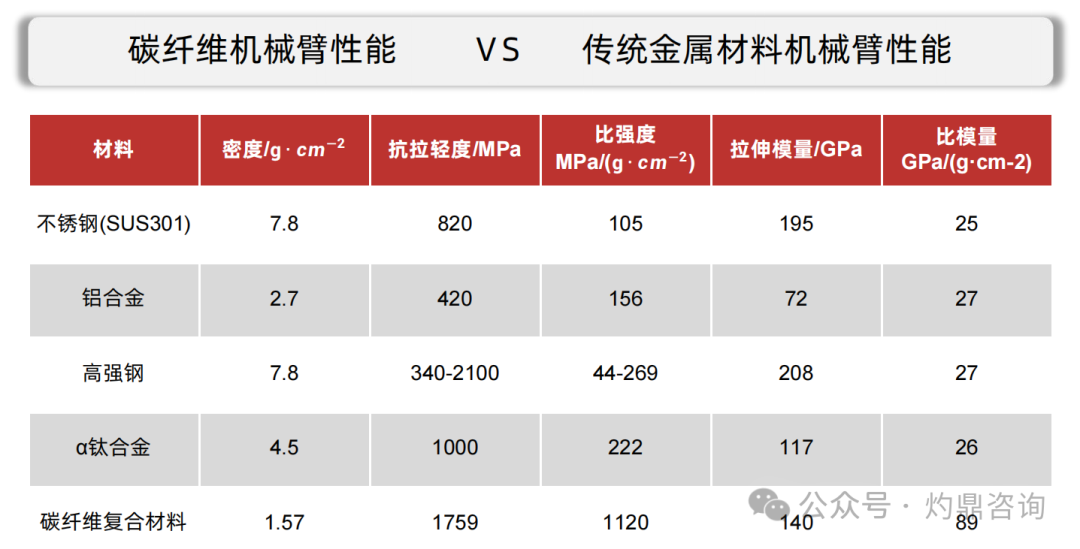 碳纤维高性能复合材料以其独特的性能特点,正逐步成为制造机器人零部件的理想选择,有望在未来逐步代替传统金属材料。