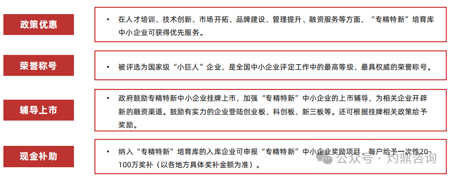 专精特新的资助对中小企业来说,含金量非常高,后期对企业在金融服务上有倾斜。此外获得此荣誉,后期在企业技改项目,培育项目资助申请上也会有政策倾斜。专精特新“小巨人”不但享有政策优惠,更有强有力的市场竞争力。