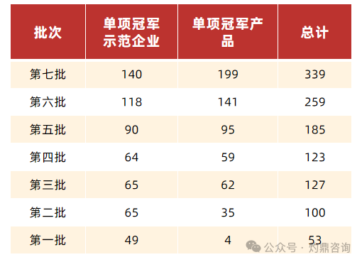 2022年10月,工信部公布第七批全国制造业单项冠军企业(产品)名单,全国单项冠军示范企业共140家,单项冠军产品共199个。7批名单中,单项冠军示范企业共591家,单项冠军产品共595个。综合来看,国家制造业单冠示范企业+冠军产品数量排名前三的是江苏省48家、山东省(青岛市除外)33家,广东省(深圳市除外)27家。