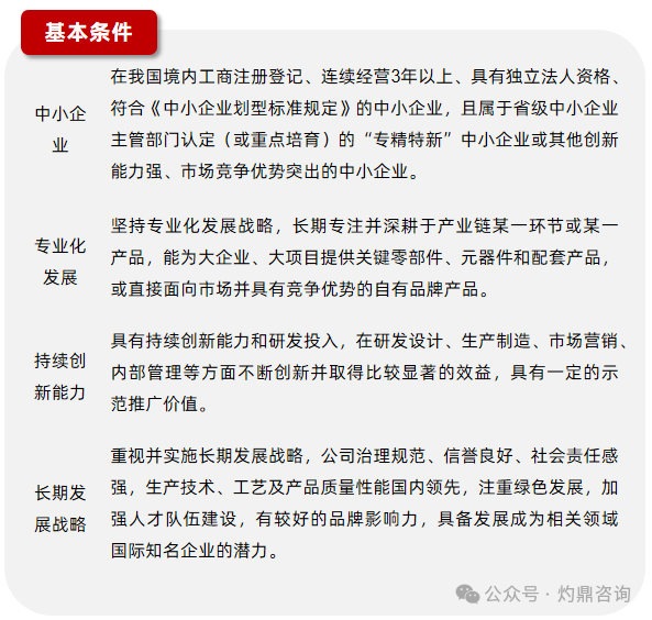 •《工业“四基”发展目录》所列重点领域,是我国产业“补短板”“锻长板”“填空白”的主要环节,当前“专精特新”中小企业约九成以上在“四基”领域。同时,制造强国战略十大重点产业领域,也是“专精特新”中小企业业务布局的主阵地。