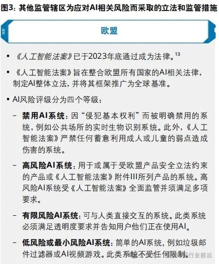 相比传统AI,生成式AI可能会对使用AI应用的金融机构提出更具挑战性的风险管理要求。由于大多数司法管辖区仍处于制定或实施AI法律法规的起步阶段,金融机构必须尽早建立自有AI治理框架并将全球/区域AI原则纳入其中。