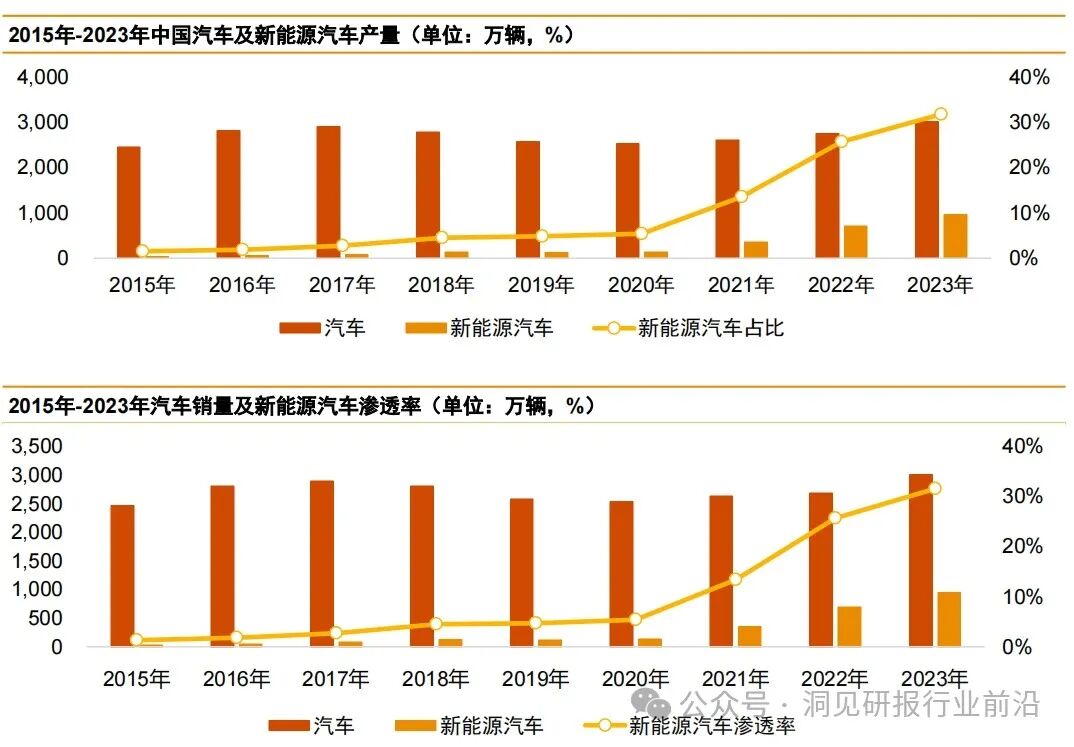 2015到2023年间,中国新能源汽车产销量持续攀升。在出口方面,中国新能源汽车凭借领先的技术水平、丰富的产品线和灵活的商业模式,正在逐渐打破国际市场的壁垒。