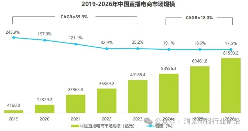 2023年中国直播电商市场规模达到4.9万亿元,同比增速为35.2%,尽管行业增速相较于行业发展早期出现一定下滑,但从2023年的市场表现看,行业依旧在释放增长信号。