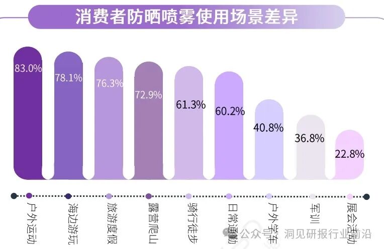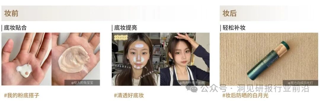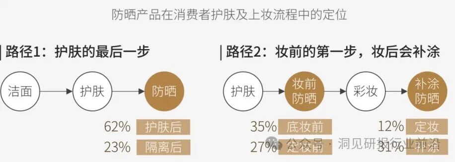 防晒霜作为传统的防晒产品,依然占据着市场的一席之地。74%的消费者认为防晒霜(及类似的面部护理产品)更像是一种介于护肤与彩妆之间的“隔离产品”。并且超半数倾向在“隔离之前”即涂抹防晒。