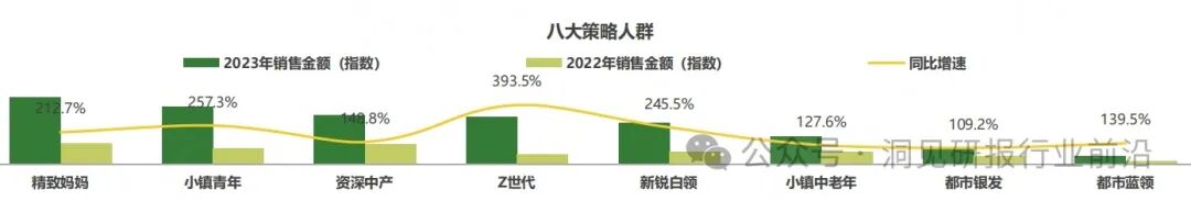 抖音防晒服市场销售金额指数八大策略购买人群分布:精致妈妈排名第一,其次是小镇青年、资深中产,为主力购买人群。
