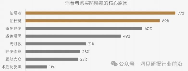 7成以上的消费者将“防晒”视为抗老的关键一环,并且消费者也存在不防晒就会慢慢“长斑”的担忧,认同“防晒需要长期坚持”的观点。