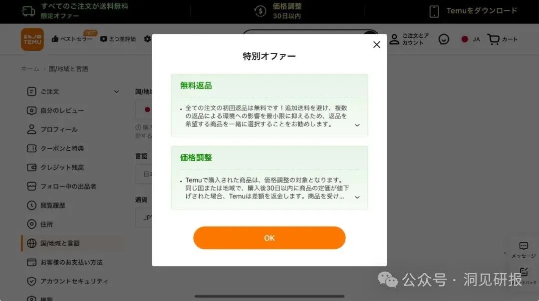 在日本市场,Temu改善了配送和售后。尽管日本消费者也追求性价比选择,但他们同样对配送、售后服务有着更高要求。由此,Temu提供全免运送费和较快的配送时效,以及90天以内退货免费等售后服务。