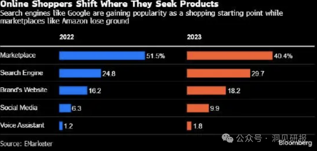2022年后期,受疫情影响,消费者的购物习惯发生了巨大变化。EMarketer的调查显示,购物者不再仅依赖亚马逊等单一在线市场,而是通过谷歌等搜索引擎浏览多个零售网站,比对交易商品价格,寻找最佳交易,Temu抓住了此次可乘之机。