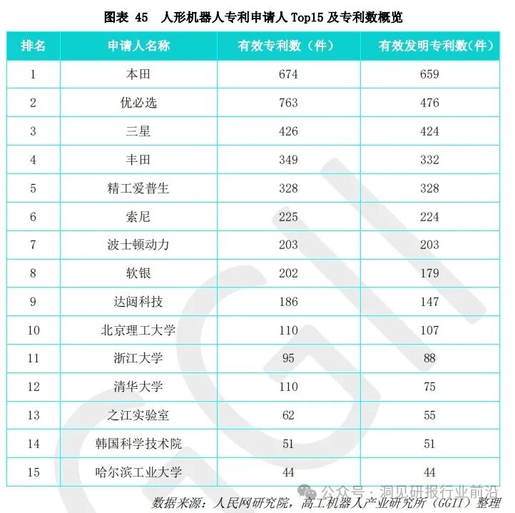 本、韩国、法国和美国。从不同国家的累计申请专利数量看,中国已累计申请6618件人形机器人技术专利,是申请数量最多的国家。从不同国家的有效发明专利数量看,日本所拥有的数量位居全球第一,中国仅次于日本。
