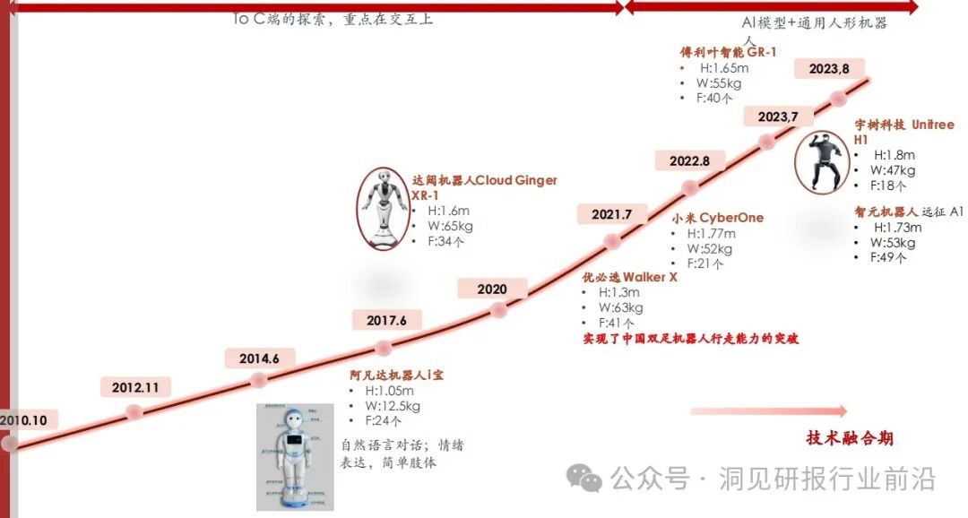 在全球人形机器人产业逐步成长的背景下,2000年国内首台人形机器人“先行者”(国防科大发布)问世,并涌现了优必选、小米、傅利叶、达阔等一批人形机器人主机厂。