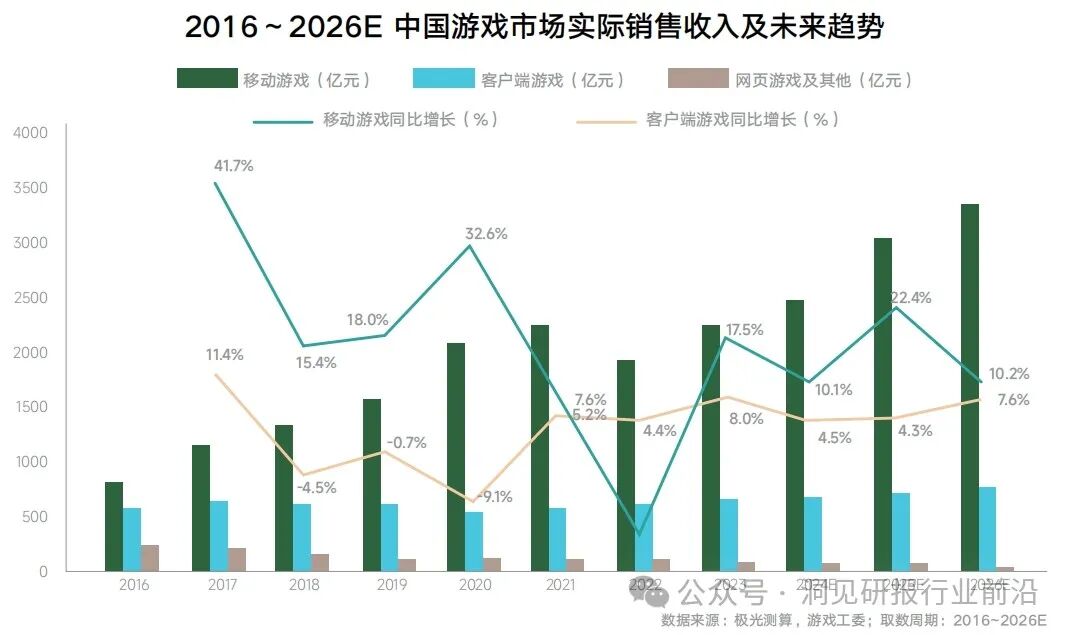 当下游戏行业已步入发展成熟期,主要体现在传统市场规模的增幅放缓、以及头部收入品类及玩法的相对固化。2023年,我国游戏市场实际销售收入达3,029.64亿元,同比增长13.95%,首次突破3,000亿元。
