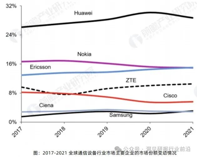 全球通信设备龙头效应凸显。在中国以外的通信设备市场上,前三名诺基亚、爱立信、华为的市场份额约为 20%、20%、18%。