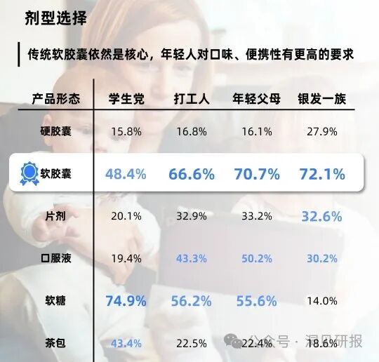 -成分构成更重多类复合,产品剂型偏好传统样式