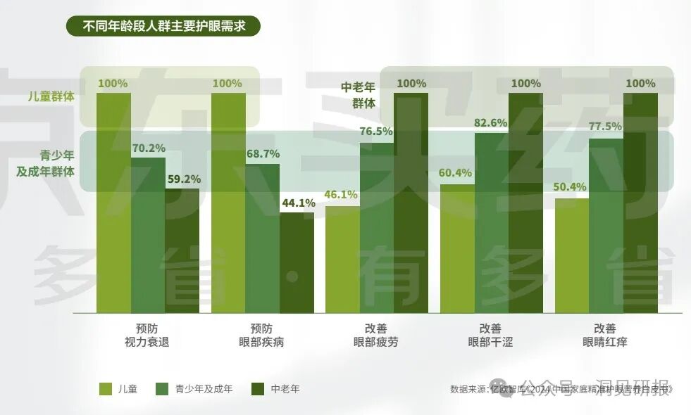不同年龄段的人群在护眼方面存在显著的特需化痛点: