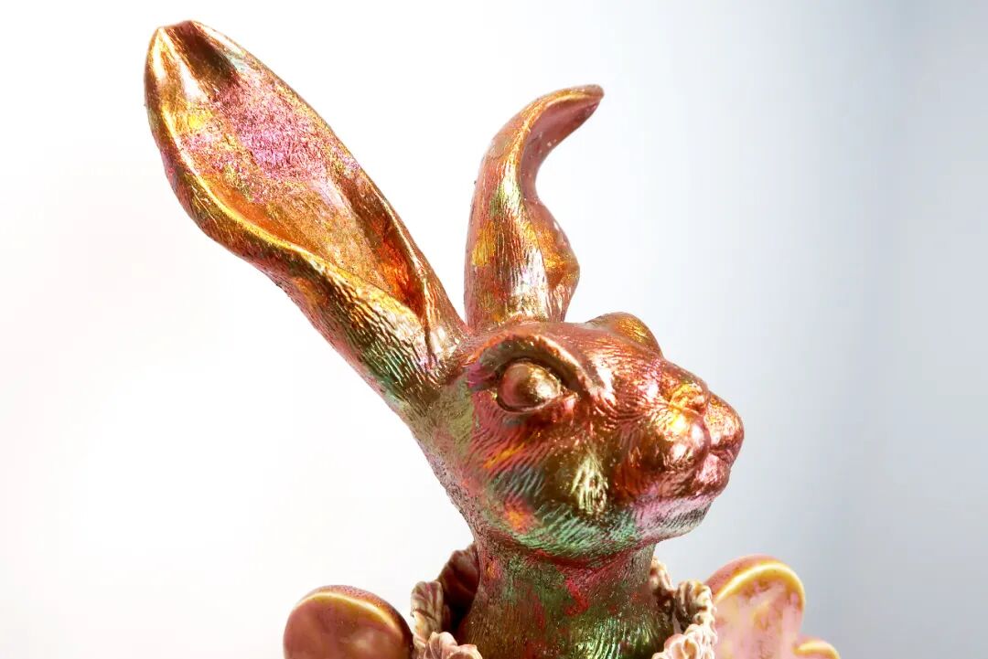 兔子的听觉非常灵敏,它那一双长长的耳朵侦测着四面八方,任何风吹草动都逃不过它的耳朵,因此兔子的形象经常会在童话主题的电影中作为通风报信的角色出现。在庇护所系列作品中的这个兔子就像是一个守护神